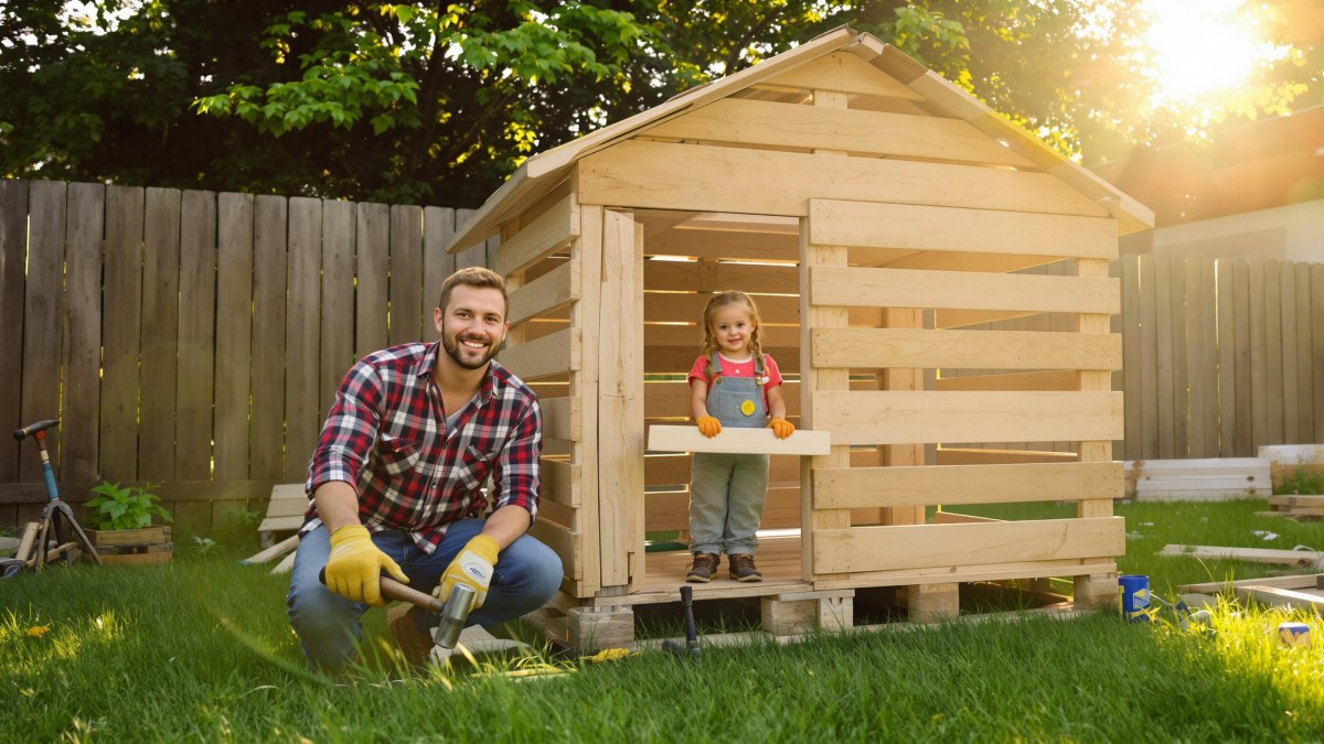 Soyons honnêtes : une cabane achetée toute faite coûte cher et n’apprend rien. Avec quelques planches récupérées :
